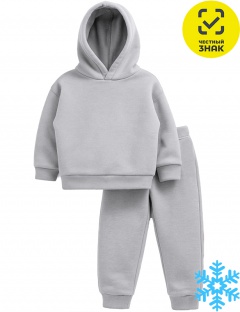 Костюм детский из футера трехнитки с начесом, состоит из 2-х предметов. Толстовка с длинными втачными рукавами на манжетах, со спущенной линией плеча, с капюшоном. Брюки на поясе на резинке, снизу на притачных манжетах.