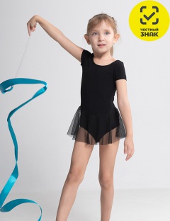 Купальник гимнастический для девочки, с коротким рукавом из трикотажа с эластаном. Юбка выполена из мягкой сетки.