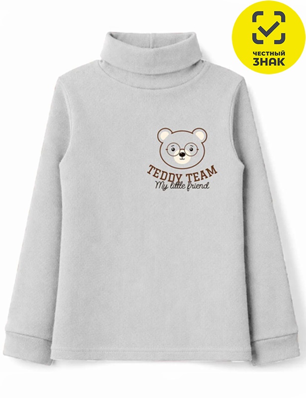 Водолазка из кашкорсе с длинными втачными рукавами с манжетами, воротник высокая стойка с отворотом, на полочке печать.