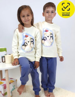 Пижама для мальчика. Джемпер прямой, рукав втачной длинный на манжете из ластика. Горловина обработана ластиком. Печать на переде. Брюки длинные на манжете из ластика. Верхний срез подшит с резинкой.