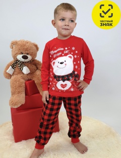 Пижама для мальчика. Джемпер прямой, рукав втачной, длинный на манжете из ластика. Горловина обработана ластиком. Печать на переде. Брюки длинные из набивного полотна. Верхний срез подшит с резинкой.