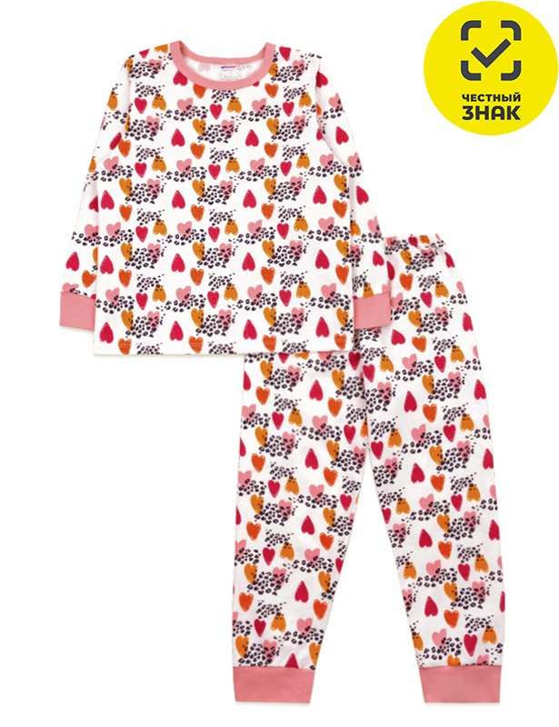 Детская пижама из набивного футера 2х нитки с начесом, состоит из прямого джемпера и длинных брюк. Джемпер имеет втачные длинные рукава на манжетах из ластика. Горловина обработана эластичным ластиком для комфортного ношения. Брюки оформлены манжетами внизу, верхний срез подшит с эластичной резинкой для удобной посадки.