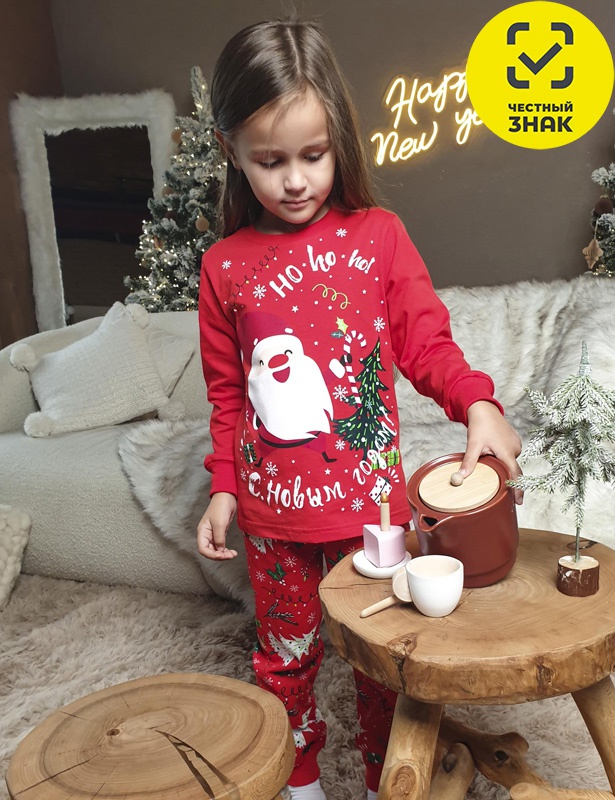 Пижама детская (джемпер+ брюки). Джемпер прямой, рукав втачной, длинный на манжете из ластика. Горловина обработана ластиком. Печать на переде. Брюки длинные из набивного полотна. Верхний срез подшит с резинкой.