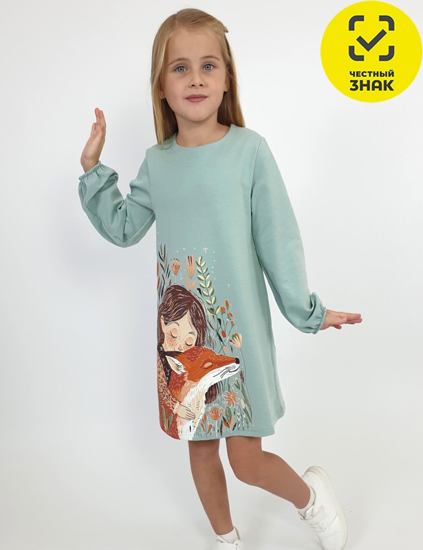 Производитель: ИП Лунева Артикул: 9-99-4 Платье для девочки Пол: девочка Полотно: футер петля Состав: 95% хлопок, 5% лайкра Возраст: 2-7