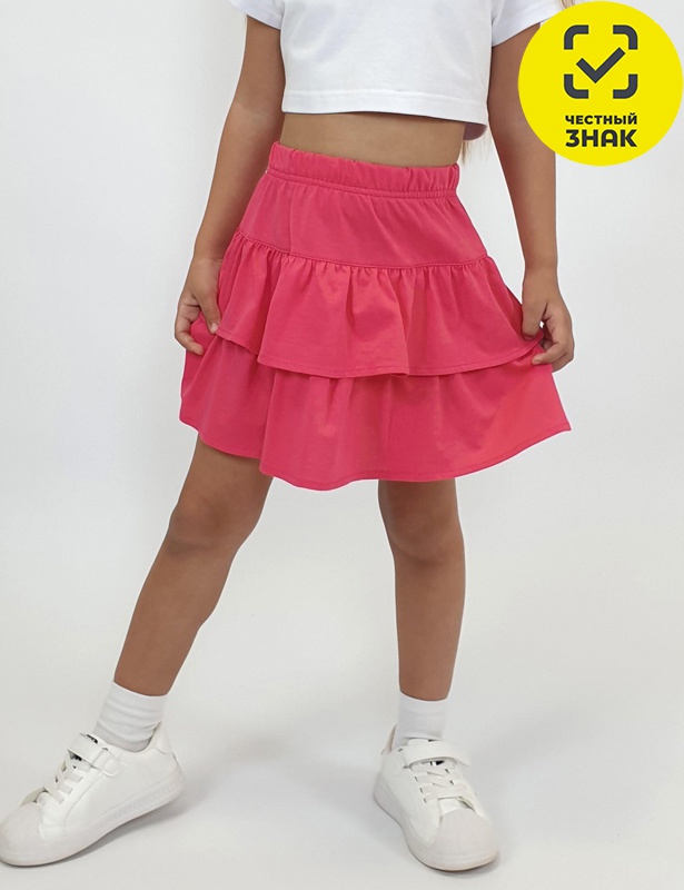 Юбка на кокетке для девочки. Резинка на поясе обеспечивает идеальную посадку, а две рюши добавляют нежности и воздушности образу.