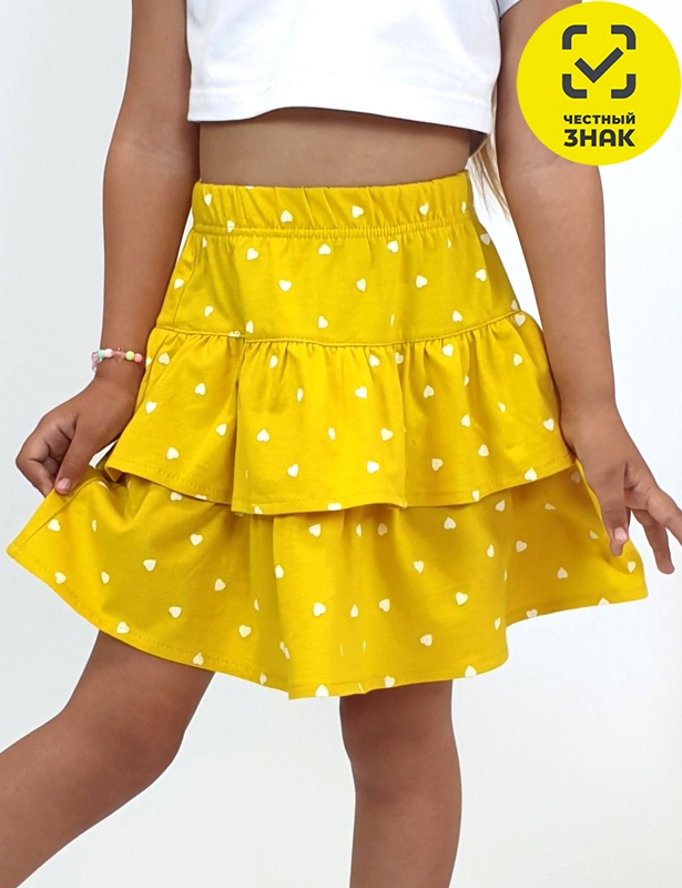 Юбка на кокетке с резинкой и двумя рюшами спереди.