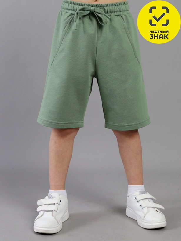 Шорты для мальчика из кулирной глади повышенной плотности. Верх шорт обработан притачным поясом из основного полотна, внутрь вставлена резинка и шнурок.