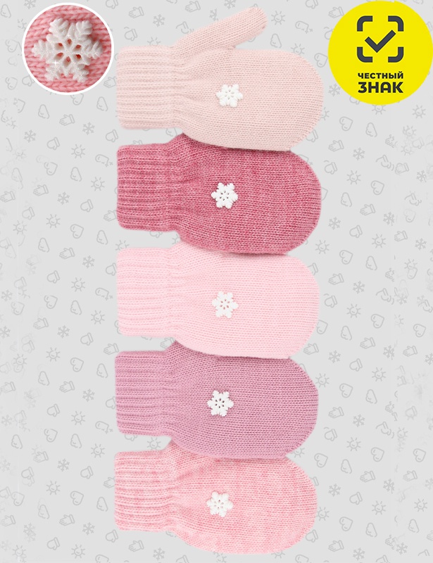 Производитель: ТМ Теплыши Артикул: TMg-014 Варежки детские, двойные Пол: девочка Полотно: вязаное полотно Состав: 30% шерсть, 70% акрил Возраст: 2-7
