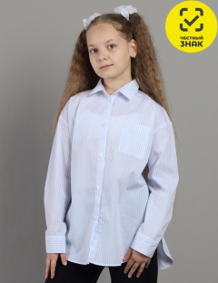 Удлиненная оверсайз блузка из хлопковой сорочечной ткани, свободного силуэта с отложным воротником и длинными рукавами. Застёжка центральная на планку с пуговицами. Спереди карман. Низ закругленный.