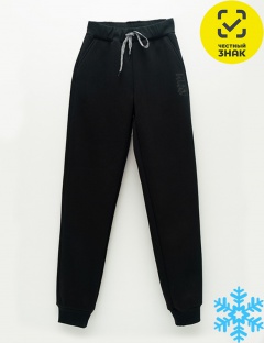 Брюки для мальчика из футера с начесом, на эластичном поясе с кулиской и со шнуром, по низу на манжетах, карманы по бокам, спереди печать.