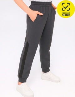 Брюки из футера двухнитки, на эластичном поясе, карманы по бокам, манжеты по нижним срезам, печать по бокам снизу.