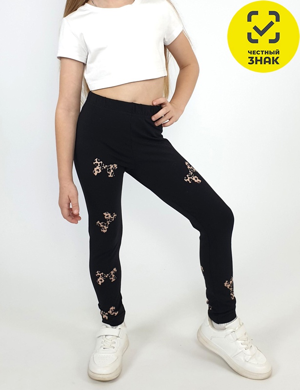 Лосины для девочки, длинные, без боковых швов, с печатью.