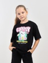 Трикотажная футболка оверсайз для девочки, из мягкого хлопкового трикотажа. Свободный силуэт со спущенной линией плеч. Модель с круглым вырезом горловины и короткими рукавами. Горловина оформлена бейкой из рибаны. Декорирована трендовым принтом, в стиле граффити спереди, надпись: Мега знаменитая. Всегда в тренде.