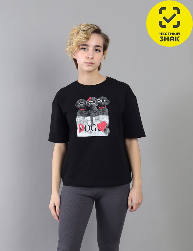 Футболка из мягкого футера. Свободный крой oversize трендовый силуэт, круглый вырез горловины, короткие рукава со спущенной линией плеча. Воротник из кашкорсе. Футболка сочетается с классическими джинсами, спортивными брюками и шортами. Выбирайте футболки oversize для многослойных образов с рубашками, худи и свитшотами для летних образов. Отделка текстовым принтом. Надпись на принте: Мечтатели.