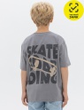Футболка для мальчика: оверсайз из кулирной глади. Рукав втачной, линия плеча приспущена, горловина обработана притачной бейкой из рибаны с лайкрой. Перед и спина декорированы принтом.