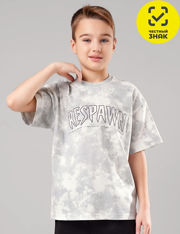 Хлопковая оверсайз футболка с эффектом варки - основа любого гардероба. Эластичная горловина, комфортная посадка по фигуре, принт- аппликация спереди.