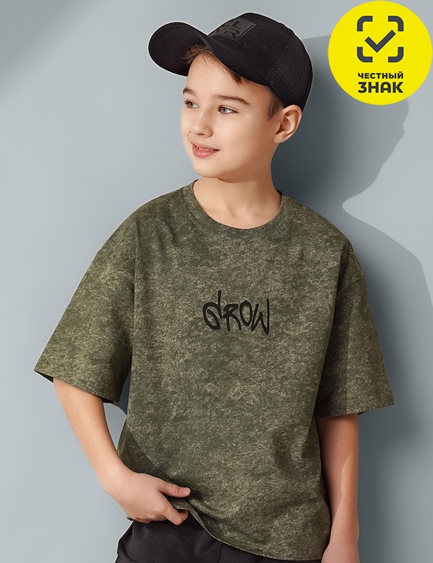 Варёная футболка для мальчика из 100 % хлопка: оверсайз-посадка, эластичная горловина, лаконичный минималистичный принт. Мягкая, комфортная, сохраняет форму после стирок, обеспечивает свободу движений.