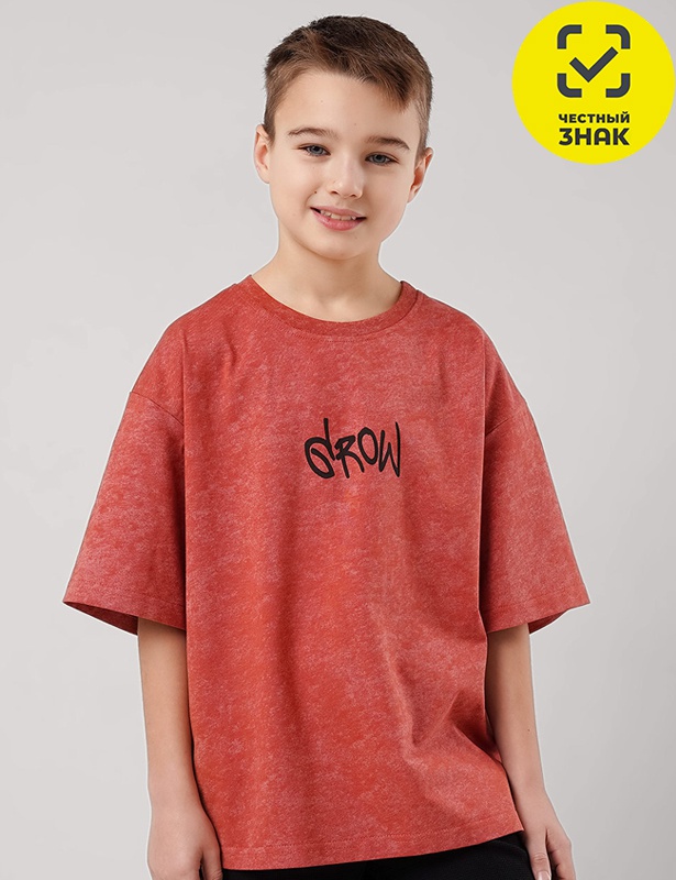 Варёная футболка для мальчика из 100 % хлопка: оверсайз-посадка, эластичная горловина, лаконичный минималистичный принт. Мягкая, комфортная, сохраняет форму после стирок, обеспечивает свободу движений.