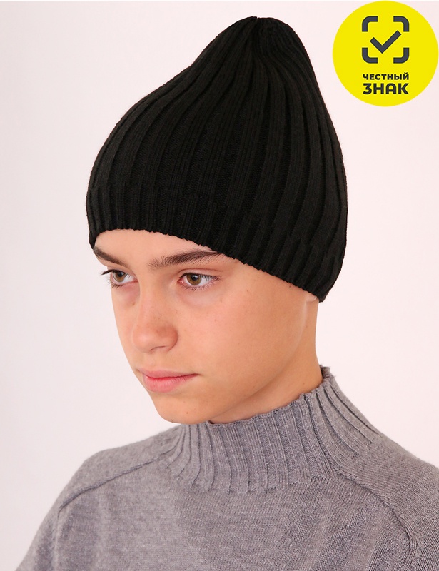 Шапка подростковая на сезон осень-весна, вязаная, однослойная, с отворотом.