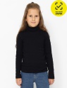 Водолазка с небольшим принтом на спинке для девочки. Модель прилегающего силуэта, с воротником-стойкой с отворотом и длинными рукавами.