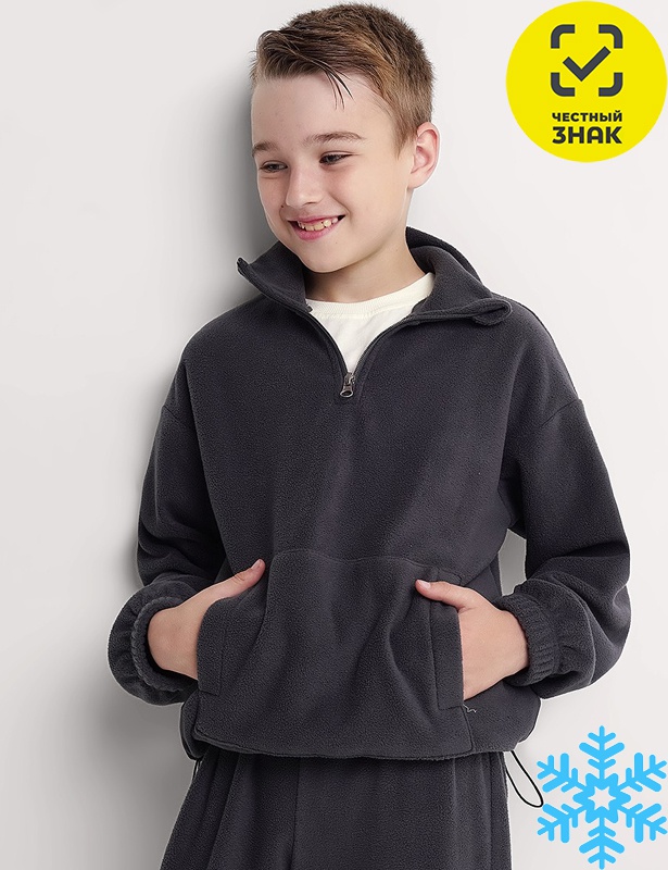 Топовая модель толстовки из флиса с короткой молнией. Оверсайз силуэт, функциональный кариман и мягкий воротник стойка.