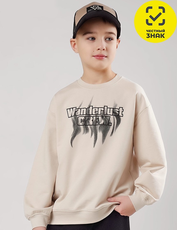 Уютный бежевый свитшот оверсайз из мягкого футера. Модель отличается свободным кроем и комфортной посадкой. Горловина и манжеты выполнены из эластичной рибаны, что обеспечивает комфортную посадку. Идеальный выбор для подростков.