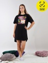 Сорочка оверсайз с короткими рукавами выполнена из гладкокрашеного полотна. Низ переда и удлинённой спинки оформлен дугообразно. В боковых швах обработаны разрезы. Горловина круглая, обработана притачной бейкой из рибаны с лайкрой. Перед сорочки декорирован принтом в стиле аниме.