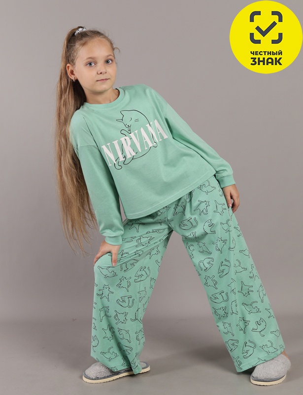 Производитель: ТМ CRB Артикул: CWJG 50226-37K Пижама для девочки (Зеленый) Пол: девочка Полотно: кулирная гладь Состав: хлопок 100% Возраст: 7-14