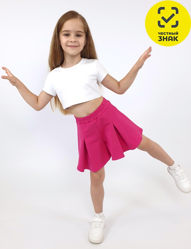 Юбка-шорты для девочки, длина до колена, встречные складки от пояса спереди и сзади. Притачной пояс с резинкой.
