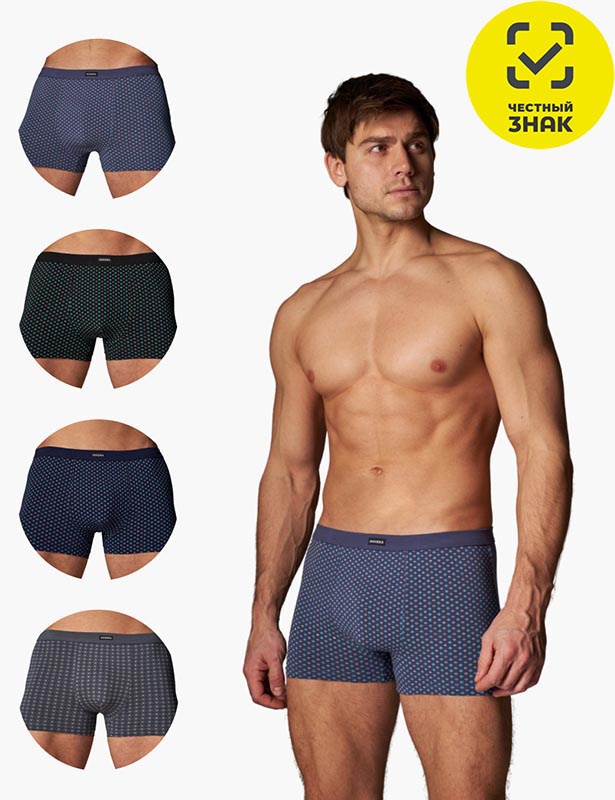 Трусы-боксеры мужские классического кроя из набивного трикотажа на эластичной резинке. Трусы продаются без упаковки с навесной биркой, без коробки.