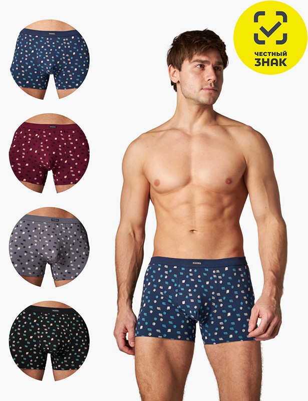 Трусы-боксеры мужские классического кроя из набивного трикотажа на эластичной резинке. Трусы продаются без упаковки с навесной биркой, без коробки.
