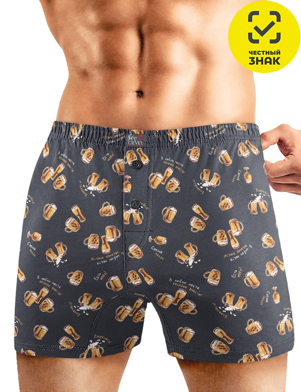 Трусы-шорты мужские классического кроя из набивного трикотажа, на поясе на эластичной резинке. Трусы дополнены пуговицами и жаккардовым логотипом.