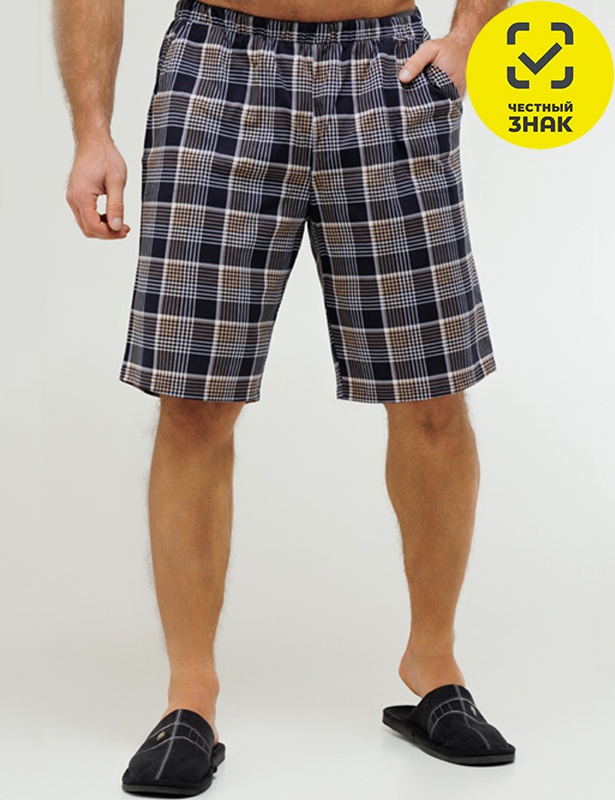 Классические мужские шорты из набивного полотна. Талия на резинке, два глубоких кармана.