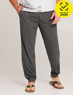 Легкие и практичные брюки из меланжа антрацитового цвета. Пояс на широкой резинке, два кармана, низ на широкой эластичной манжете.