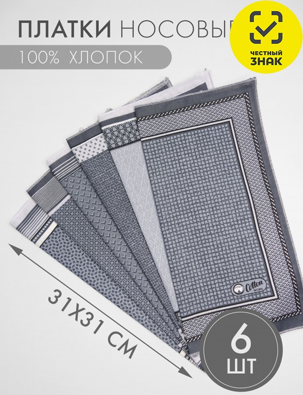 Платок носовой размером 31*31 см. Цена за упаковку, продажа по оптовым ценам осуществляется упаковками, 6 шт в упаковке.