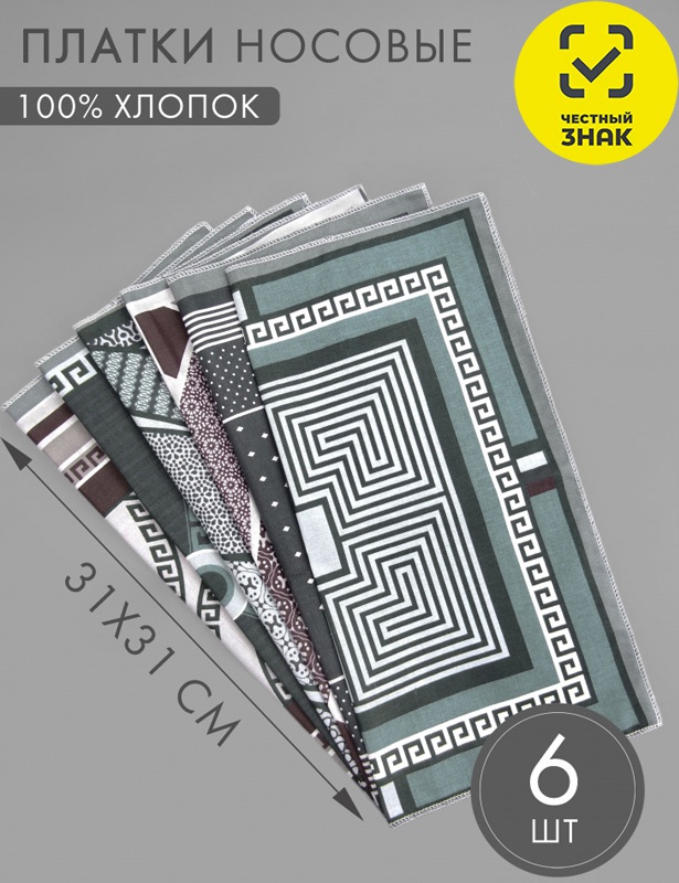 Платок носовой размером 31*31 см. Цена за упаковку, продажа по оптовым ценам осуществляется упаковками, 6 шт в упаковке.