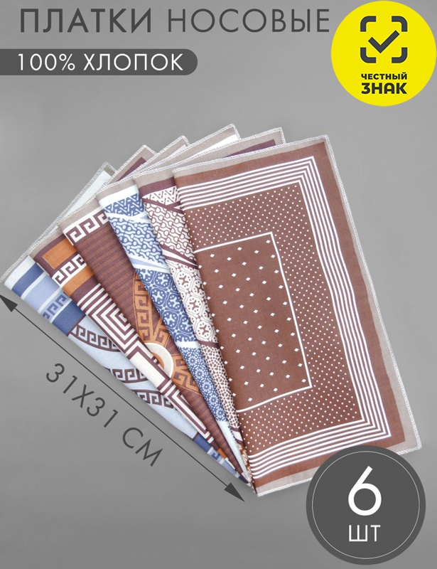 Платок носовой размером 31*31 см. Цена за упаковку, продажа по оптовым ценам осуществляется упаковками, 6 шт в упаковке.