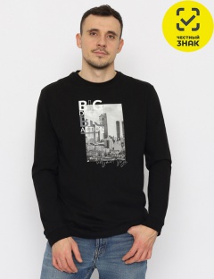 Джемпер мужской прямого силуэта. Рукава с манжетами. Круглая горловина обработана узкой притачной обтачкой из рибаны с эластаном. Полочка декорирована принтом.