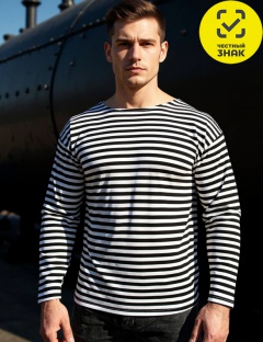 Тельняшка в полоску, с длинным рукавом, округлая горловина.