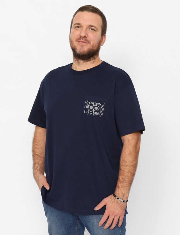 Футболка прямого силуэта длиной по линию бедер. Рукав до локтя. Круглая горловина обработана узкой притачной обтачкой из рибаны с эластаном. Нагрудный карман декорирован принтом.