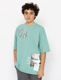 Молодежная футболка oversize с короткими рукавами и выразительным принтом спереди "оставайся простым", "оставайся верным". Футболка выполнена из кулирки повышенной плотности. Горловина круглая, оформлена эластичным воротником.