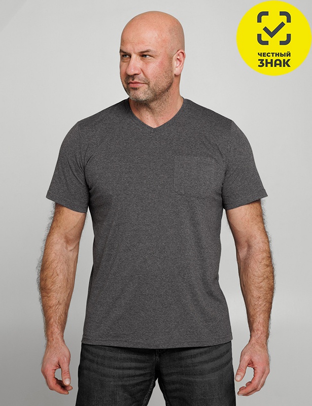 Футболка мужская с коротким рукавом. V-образной горловиной, с накладным карманом на груди.