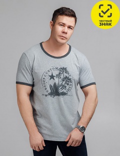 Мужская футболка из кулирного полотна с коротким втачным рукавом, округлой горловиной и принтом спереди.