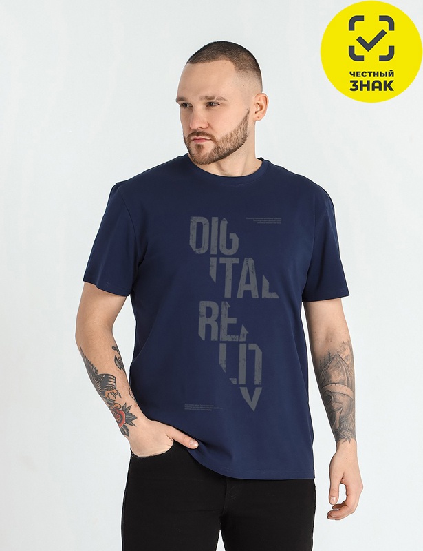 Мужская футболка изготовлена из гладкокрашеного трикотажного полотна «кулирка» с добавлением лайкры. Модель классического покроя, с короткими втачными рукавами. Горловина овальной формы обработана втачной планкой. На полочке нанесен принт, выполненный в технике шелкографии.