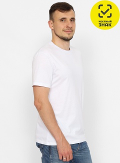 Базовая мужская футболка с коротким рукавом. Вырез горловины круглый, обработан притачной планкой из рибаны с лайкрой.