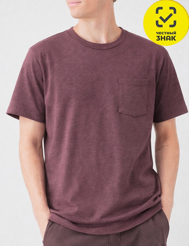 Футболка классического объема с коротким рукавом из полотна с ФЛАМ эффектом(неравномерная пряжа). Горловина обработана притачной обтачкой из рибаны с эластаном. На полочке с левой стороны накладной карман. Шов по горловине спинки закрыт экстрафорной лентой.
