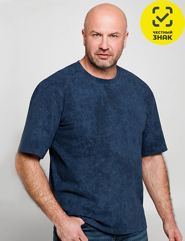 Футболка мужская из хлопкового полотна, короткий втачной рукав и округлая горловина.