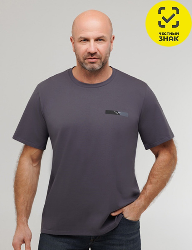 Футболка мужская из хлопкового полотна, короткий втачной рукав и округлая горловина.