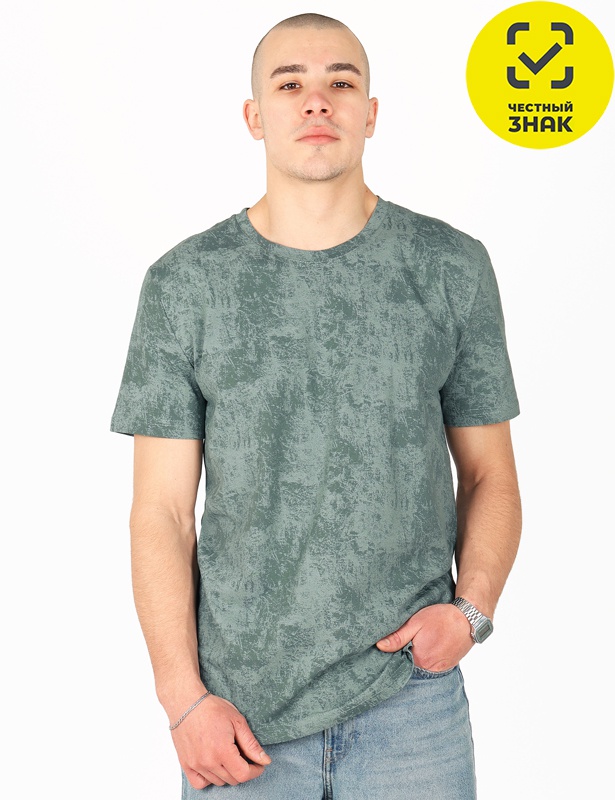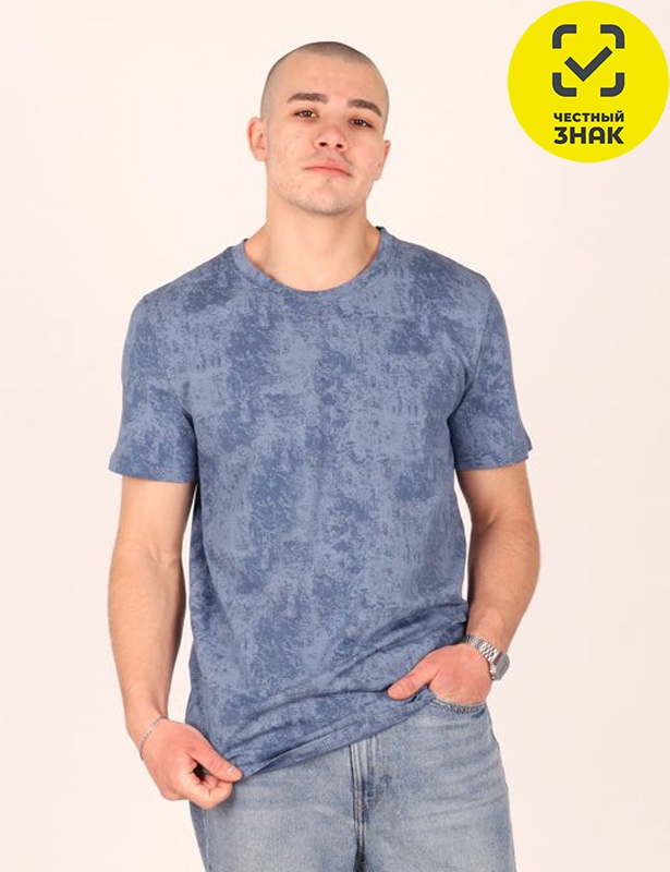Мужская хлопковая футболка из набивного трикотажного полотна с рисунком, имитирующим джинсовую ткань.