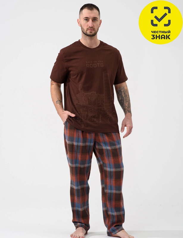 Производитель: ТМ Оптима Трикотаж Артикул: 2431-К/Ф Пижама мужская "Огни ЕКБ" (коричневый) Пол: МУЖСКОЙ Полотно: кулирная гладь Состав: верх: 100% хб; низ: 65% пэ, 35% хб Возраст: взросл